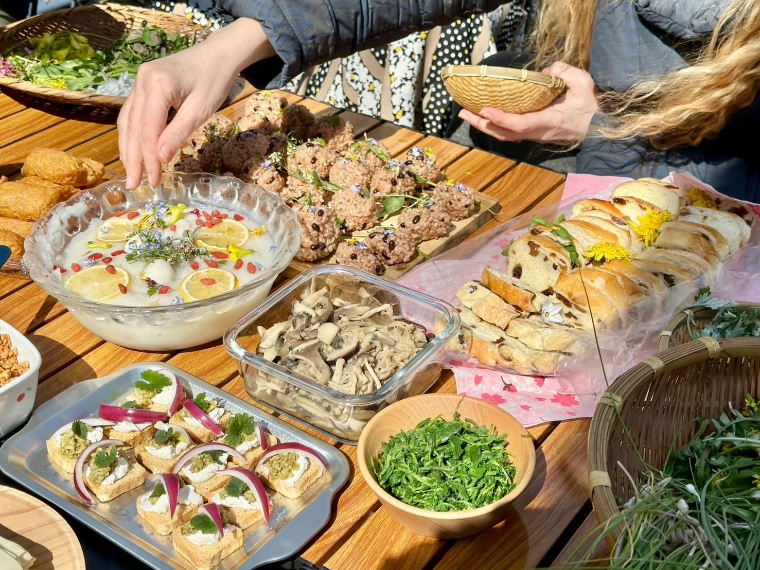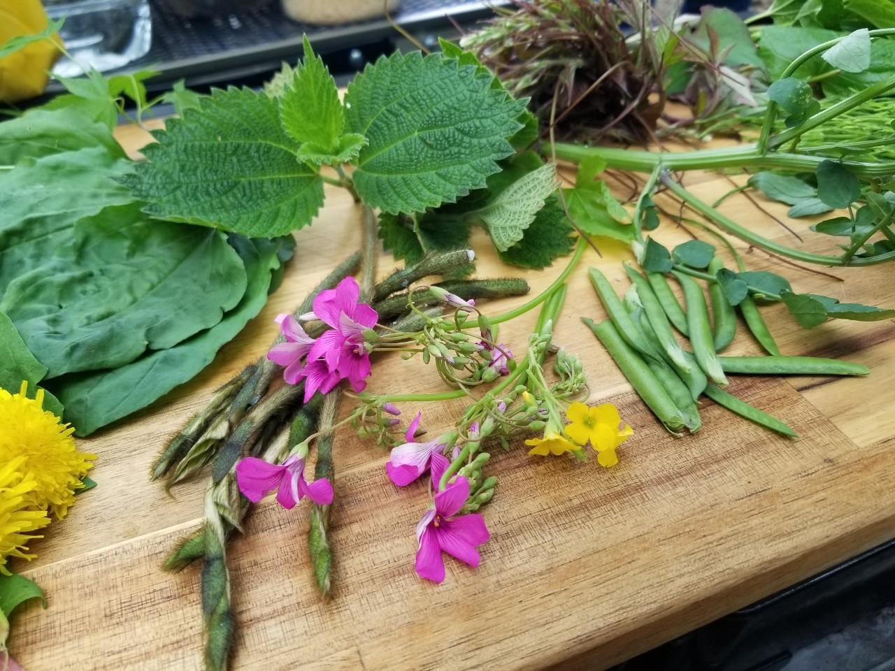 その食材の中から、相性の良さそうな野草を組み合わせて調理をします。