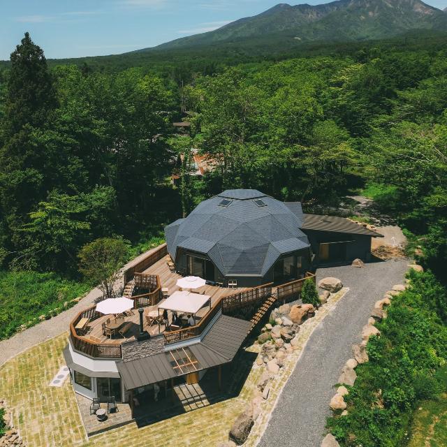 このドームは、国産の杉を中心に、細部までこだわり抜いた自然素材で造られており、黄金比に基づいた構造となっています。中に入るだけで、これまでにない心地よさに包まれる空間です。